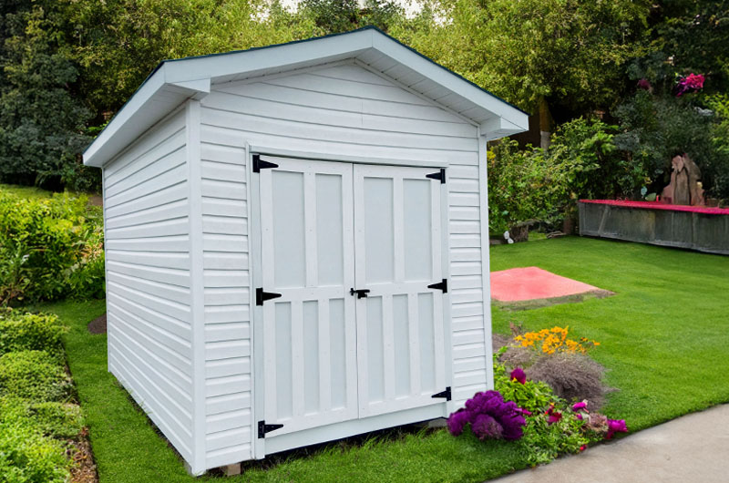 The classic storage solution. The walls are 7'3" tall. The shed comes with a 5' wide barn door for wider lawn mowers and snow blowers. Choices include a 4/12 6/12 pitch roof and dormers. An attractive addition to your property.